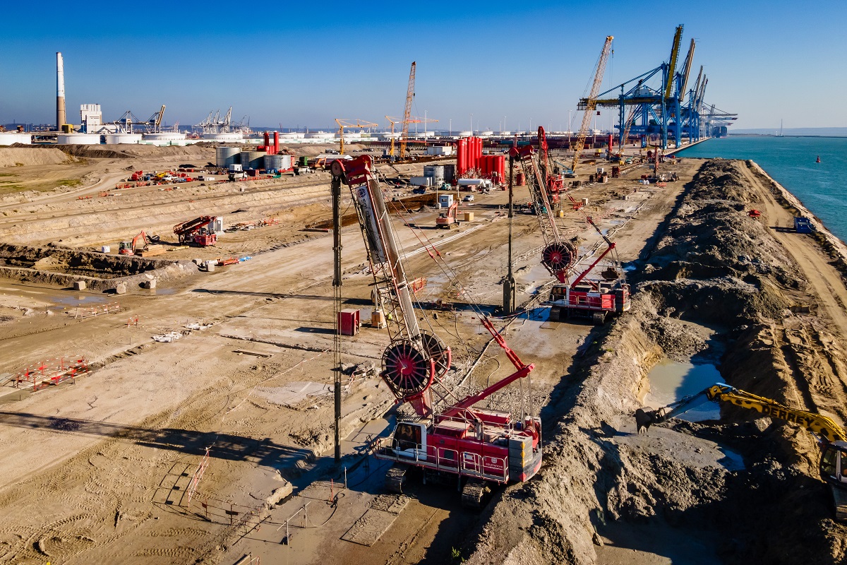 Soletanche Bachy France réalise au Havre la construction des postes 11 & 12 de Port 2000 dans le prolongement des dix premiers postes déjà construits.