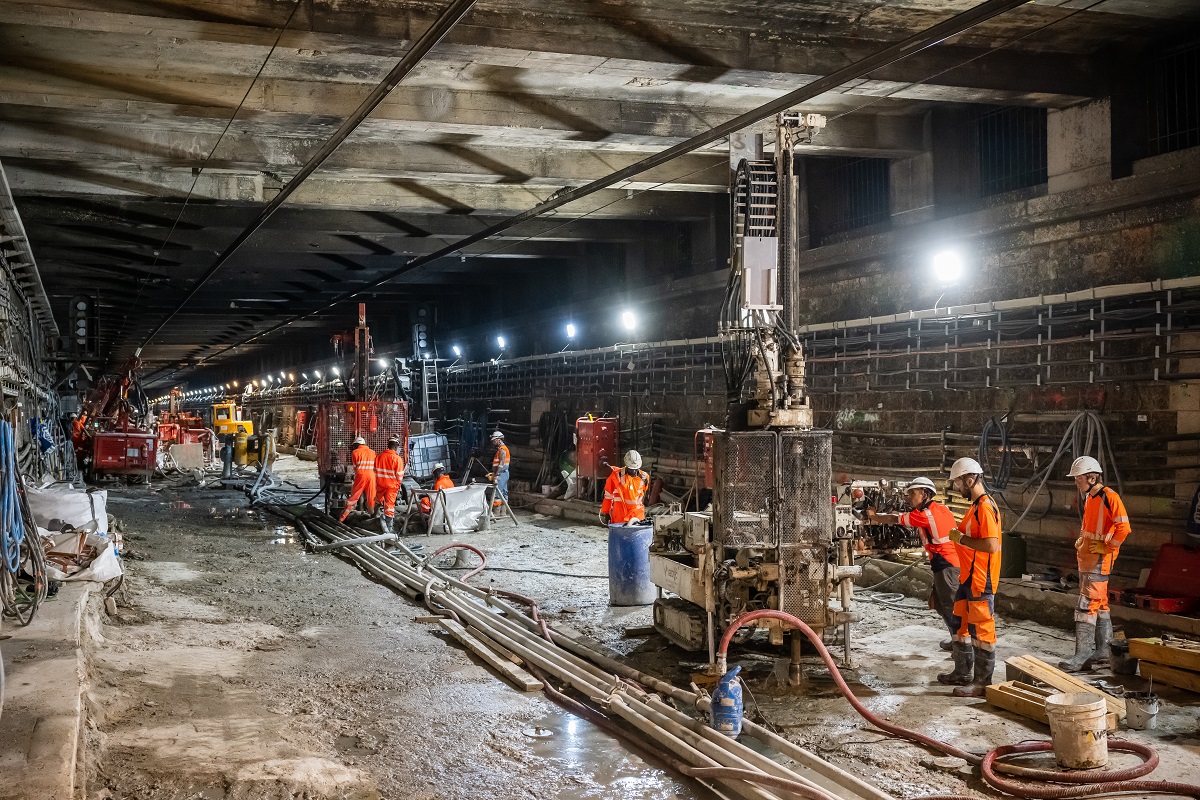Afin de sécuriser le creusement traditionnel nécessaire à ce rameau, des traitements de terrain par injection et du jet grouting ont été réalisés préalablement.